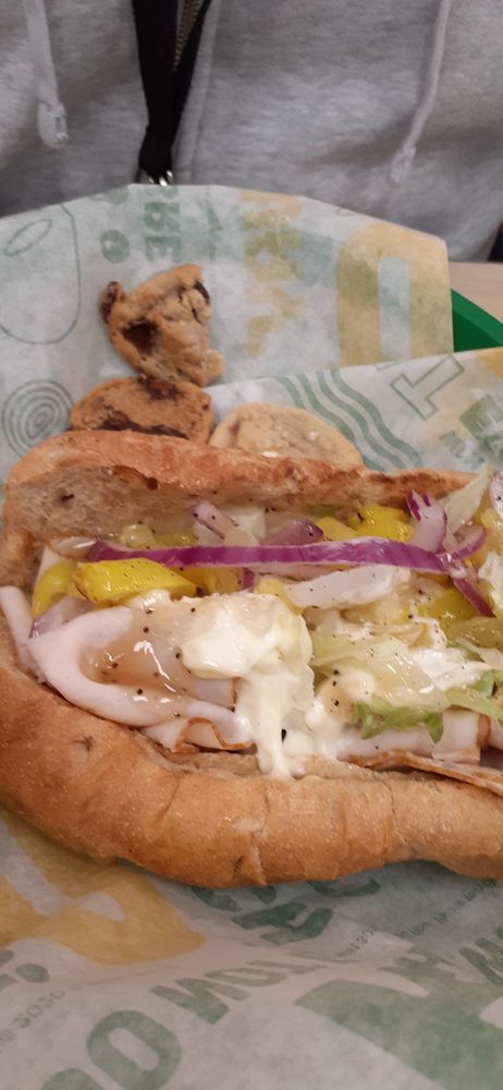 Enjoy the flavor of tender, thin-sliced oven-roasted turkey and Black Forest ham with your favorite veggies, from juicy tomatoes to sweet red onions, and American cheese, all served on freshly baked, Hearty Multigrain bread.